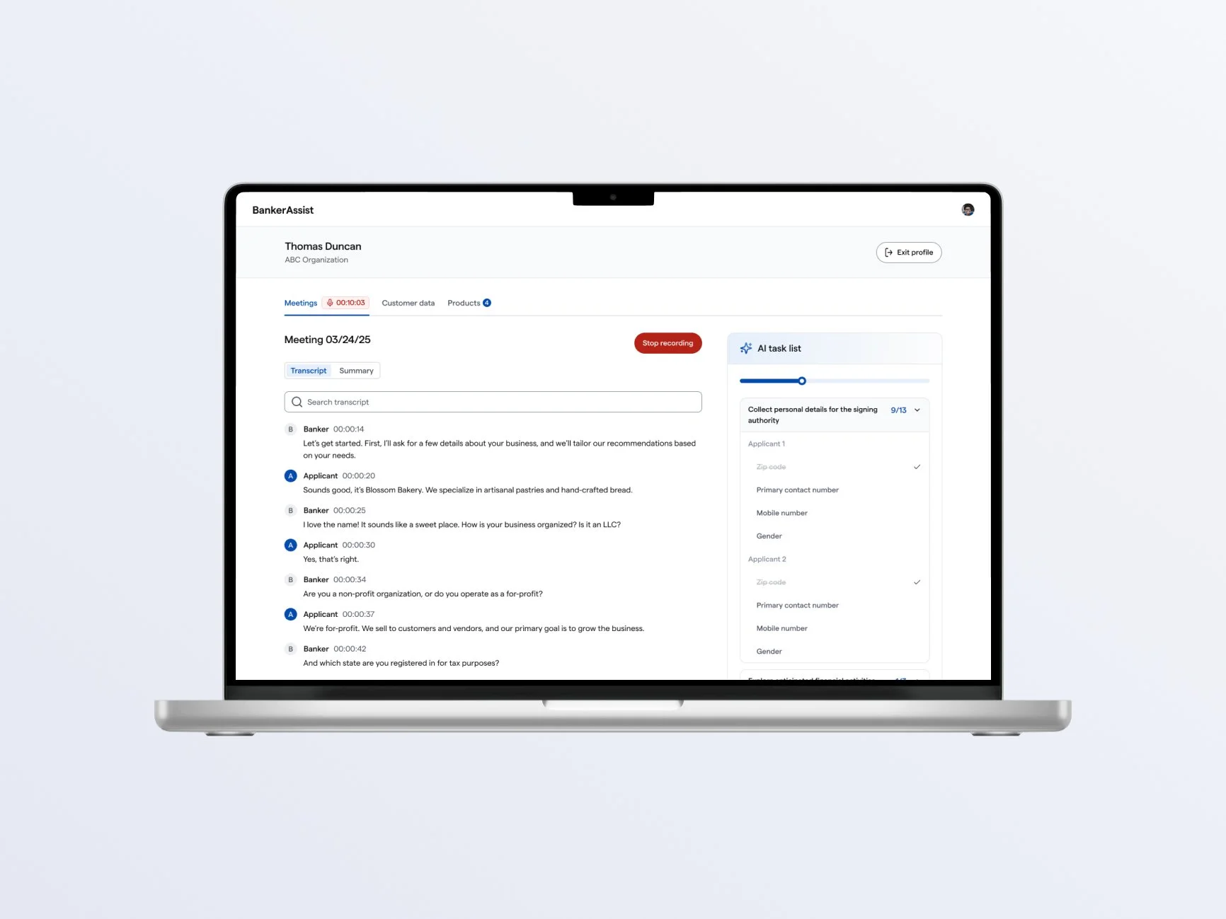 An AI-powered web platform that streamlines deposit origination for bankers and enhances customer relationships